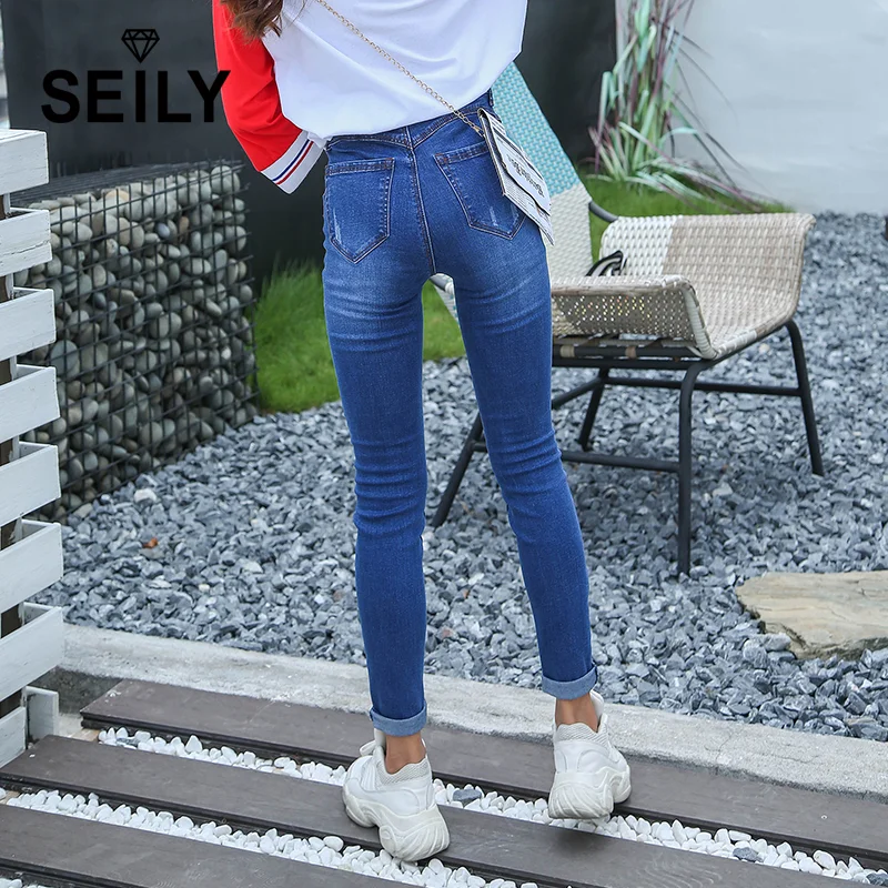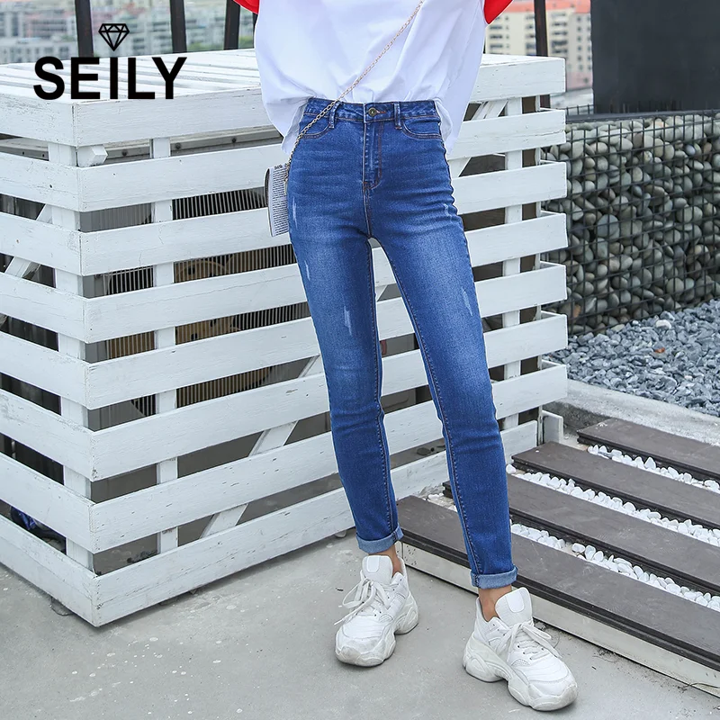 Best Offer 2020 Classic High Waist Stretch Jeans Woman Slim Fit Skinny Denim Pencil Pants Ripped Washed Denim Jeans For Women