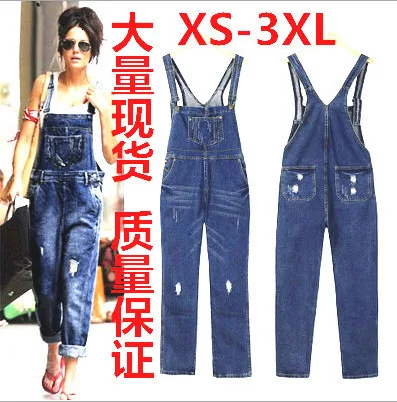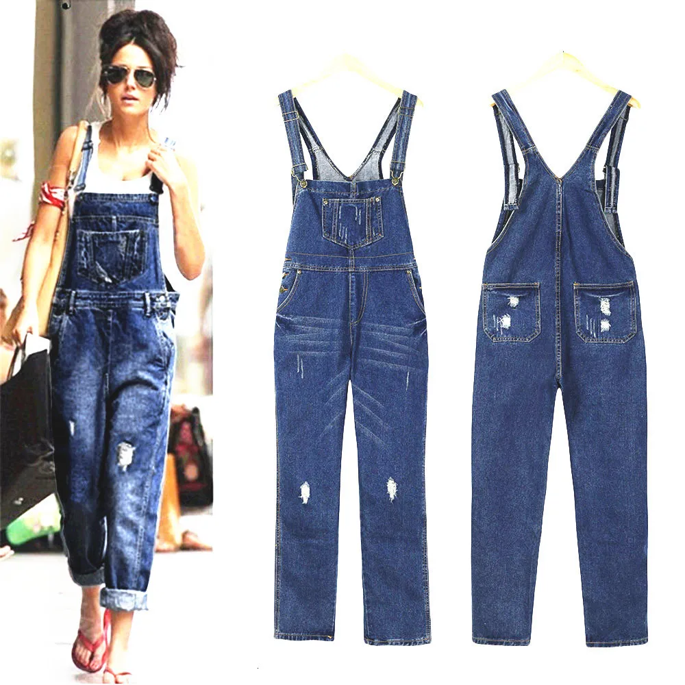 Sale Womens Ripped Overall Jeans Loose Straight Bib Pants Casual Plus Size Female Street Pocket Suspenders Denim Trousers with Braces