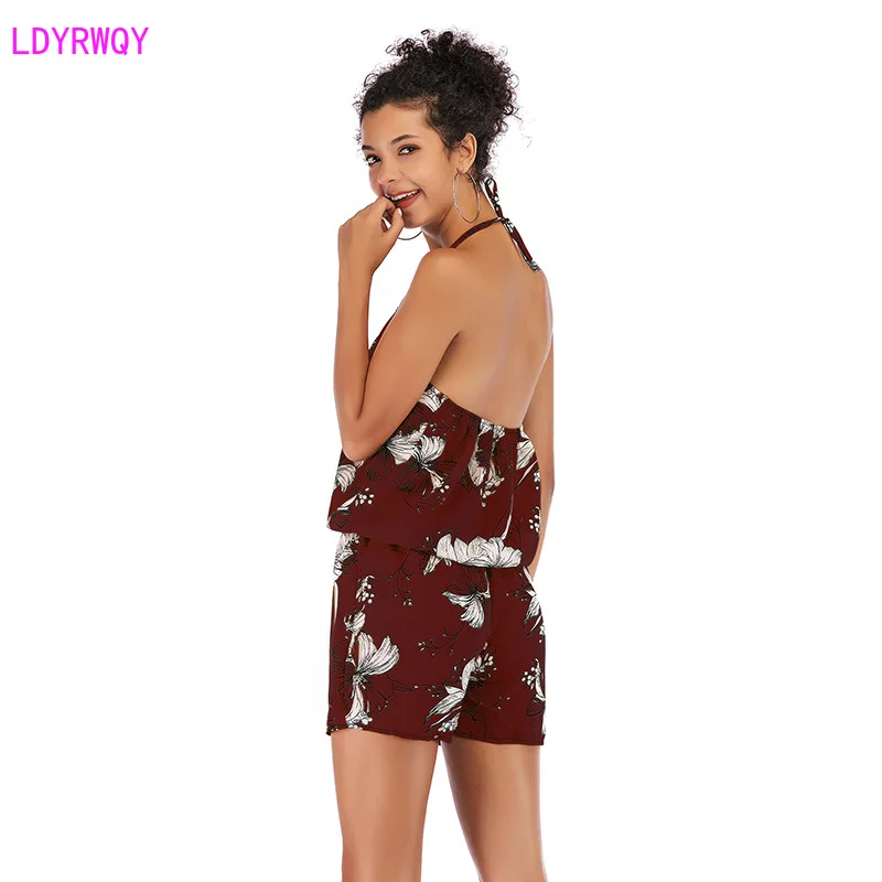 Sale 2020 spring and summer new European and American women's sleeveless printed halter open back sexy jumpsuit Chiffon