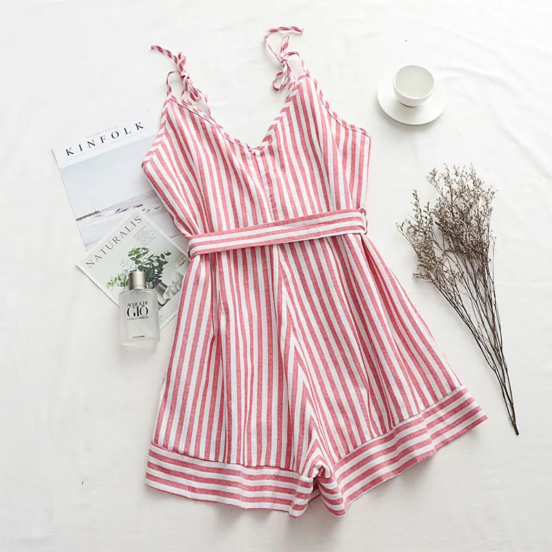 Images of DIMANAF Plus Size Women Playsuits Pants Striped Pink Summer Holiday Beach Style Loose Casual Trousers Sexy Lady Spaghetti Strap :
