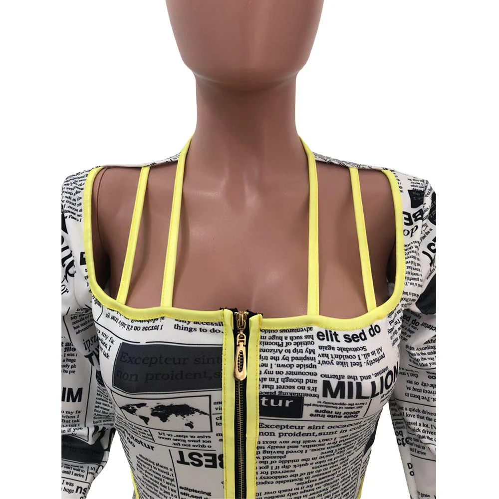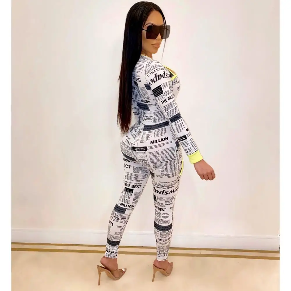 Images of Echoine Paper Print Letter print Bandage Hollow Out Jumpsuit SKinny Sexy Female Playsuit Club Outfits Streetwear Rompers :