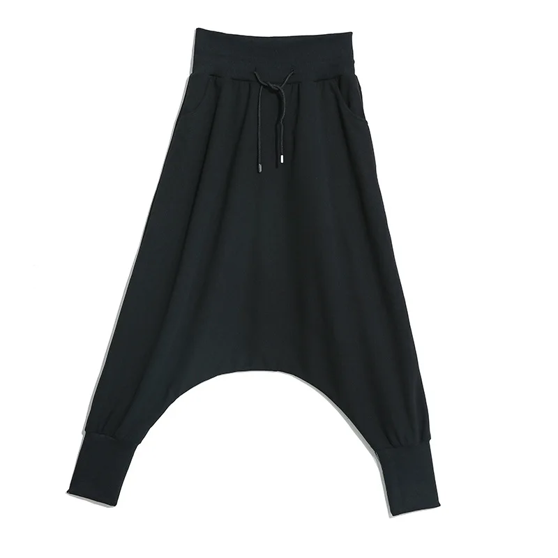 Best Offer Baggy Harem Pants Unisex Elastic Waist with Lace-up Women Hip Hop Drop Crotch Long Pant Men Bunch Pencil Bottom Casual Trousers