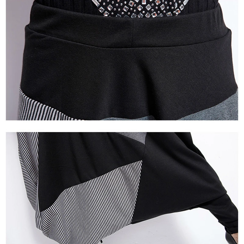 Promo Patchwork Cross-pants Women Drop Crotch Hip Hop Long Pants Plus Size Unisex Men Casual Colour Block Stiped Drawstring Trouser