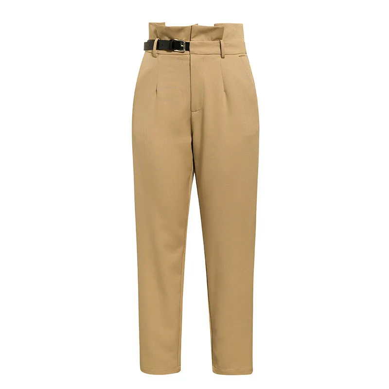 Images of Conmoto High Waist Pencil bottoms Pants women 2019 Autumn Winter Female Casual Belt Patchwork Long pants Blazer femme Trouser :