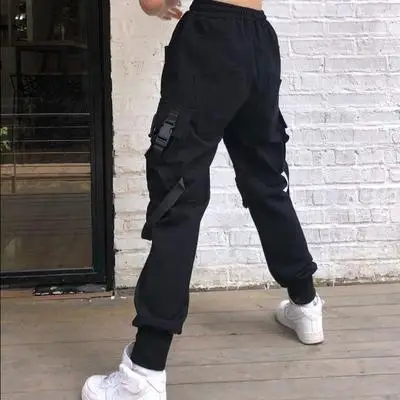 Images of HOUZHOU Winter Cargo Pants Women Punk High Waist Pants Joggers Hip Hop Pants Hippie Black Trousers Women Harajuku Streetwear :