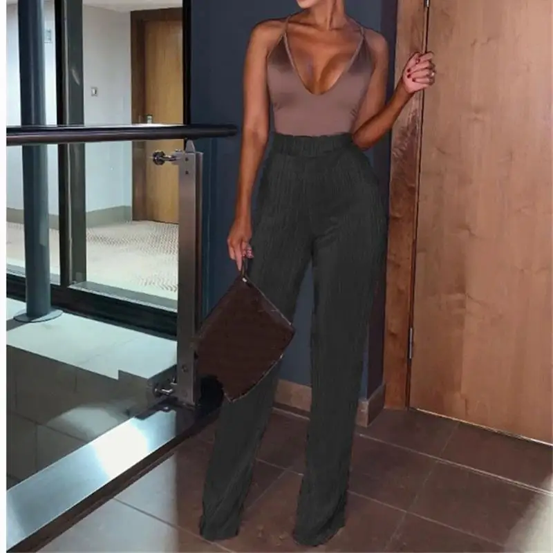 Sale Women New High Waist Long Pants Sparkly Sexy Wide Leg Casual Pants Fashion Vintage Solid Color Party Pants