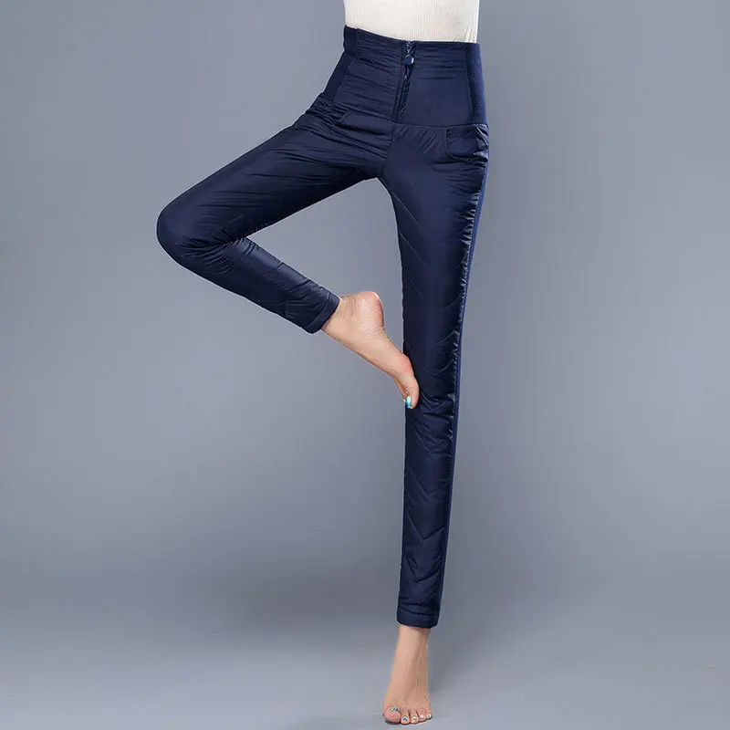 Images of Woxingwosu winter ladies slim trousers wear thick feet high elastic women's down pants :