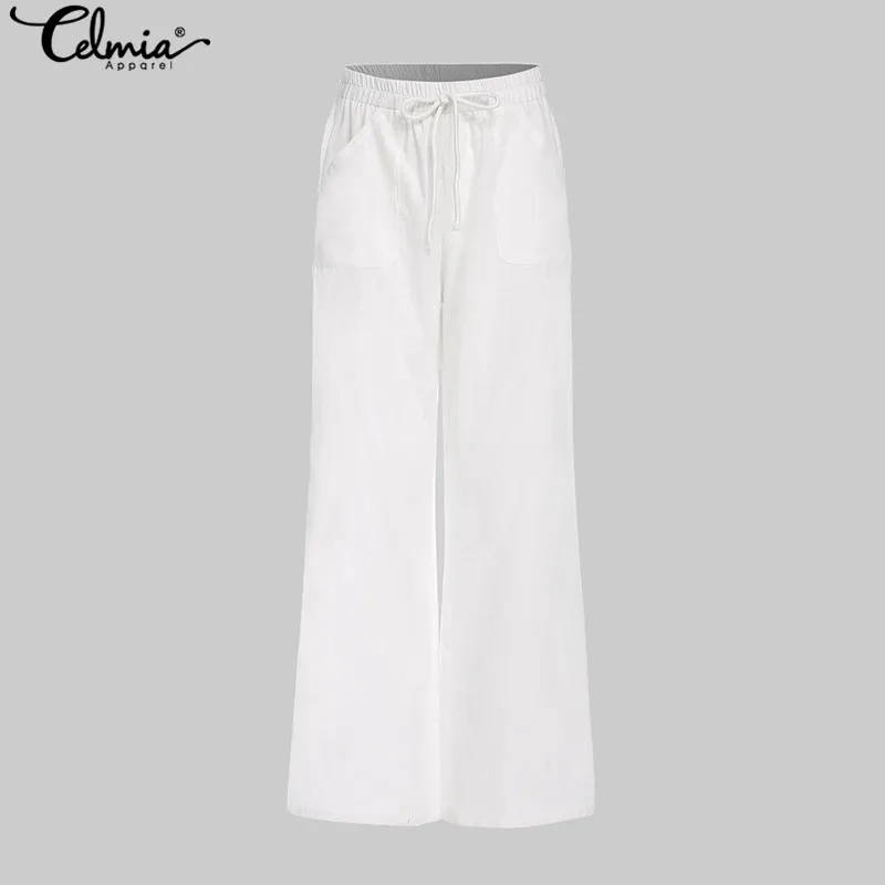 Sale Women Vintage Linen Pants Long Palazzo 2019 Celmia Casual Loose Wide Leg Pants Elastic Waist Trousers Plus Size Pantalon Femme 7